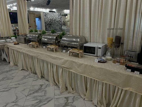 Приезжали на одну ночь с мужем и ребенком (2 года) Жили в императорском люксе. Нам очень понравилось, приедем ещё. + хороший матрас, очень плотные подушки (на любителя), чистый номер + диван в номере раскладывается в полноценное спальное место на одного, есть доп комплект белья + шторы достаточно плотные. Не блэкаут, но и совсем не марля. + приветливые администраторы + еда: утром шведский стол отличный, на любой вкус: можно набрать и стандартный вариант завтрака, и почти обеденную тарелку + - заход в гостинницу оооочень обкуренный (эффект проведения свадеб на первом этаже), до коридора на втором этаже тоже дотягивало - музыка до 23 действительно громкая, но не до таблеток от головы, как тут кто-то писал:)