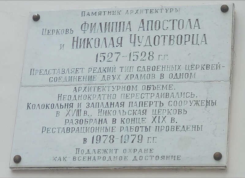 Гуляя на торговой стороне вышли к этой церкви на звон колоколов. Храм оставил большое впечатление! Перед отъездом сюда ещё раз пришли. Церковь святого апостола Филиппа и святителя Николая Чудотворца старая и значимая, нам там рассказали об истории этой церкви. Эта сдвоенная церквь таких церквей только две в России: здесь и в Пскове. Очень жаль, что этой церкви нет даже в достопримечательностях города, не говоря уж об экскурсионных маршрутах. Рекомендую всем посетить этот храм!