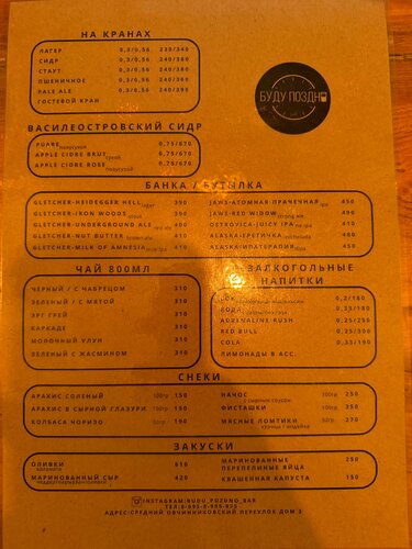 Магическое место. Хожу туда раз в полгода, что бы меня забыли. Не забывают. Всегда много разнообразных настоек. Недавно добавили крепышей. Выбор бомба. Кухня очень достойная для бара. Всем советую. Ребята (язык не поворачивается назвать их персоналом) очень приятные. Иногда бывают Stand up, тематические вечеринки. А их канал в ТГ это бомба. Постоянно какой то движ.