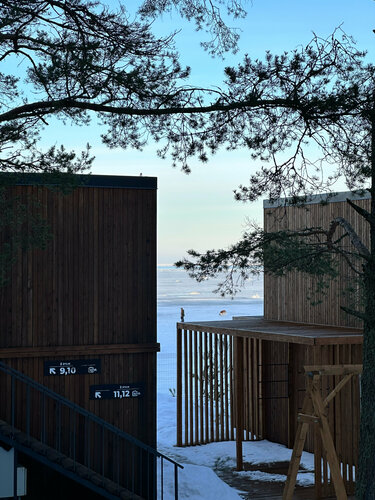 Очень любим Елки, бронируем домики для отдыха только у них. Чистота, уют всегда топ💯 когда объявили что появилась новая локация, еще и в таком живописном месте, сразу решили сьездить. По цене приятно, близко и формат больше гостиничный-новый для елок, раньше такого не было. Номер небольшой, с отдельным входом, с маленькой но функциональной кухней- для двоих самое то. Чисто, приятно, спокойный итерьер. Территория классная, стильные корпуса, дорожки. Для любителей шашлыков есть беседки. Но самая бомба это вид из окна и пляж. Нам очень понравилось, рады что все на уровне. Очень хотим приехать туда летом, позагорать и отдохнуть на пляже. Всем советую!