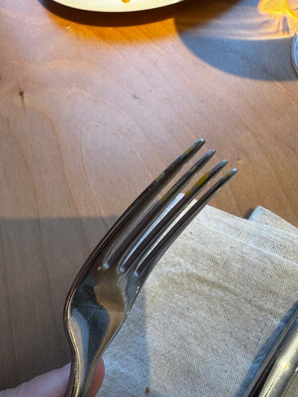 Холодно, пита скорее похожа на безвкусный хлеб, сок принесли ледяной с учетом сильного минуса за окном. Как позже выяснилось он был и комнатной температуры, но надо просить отдельно. Персонал приветливый, но в наш зал официант почти не заходила и каждый раз было проблемой что-то заказать. Вилка, которую мне принесли, была с присохшей едой. Вишенкой на торте было то, что наши пуховики, которые висели при входе в тамбуре, пропахли «столовским» запахом так, что пришлось сдавать в химчистку. Еда и десерты были вкусные, тут без вопросов)