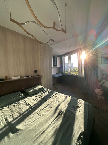Ребята помогли реализовать все самые необычные и сложные идеи! Шкаф-гардеробная, рабочий стол идеально вписанный в узкий угол, книжный шкаф до потолка подогнанный в нестандартную трапециевидную нишу. Кухня в эмали и шпоне, прекрасная тумба для бокалов в гостиную