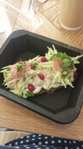 Довольно быстрое обслуживание. Брискет суховат, тёплый салат с баклажаном - в составе только баклажаны в очень жёсткой корочке и помидор, удивило что без сыра. Морс вкусный. В целом съедобно, но не вау.