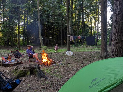 Хорошее, уютное и чистое место. В лесу есть много места для установки палатки - заранее нужно сообщить о намерении отдахнуть с ночёвкой так как услуга платная. Мы заплатили но за одну ночёвку в 2х мечтой палатке Не так много места для отдыхающих на пляже.