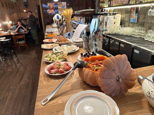 Зашли случайно, искали место испить пивка, и попали на "похмельный обед" в воскресенье (прямо для нас). То, что доктор прописал. При заказе напитков обед был бесплатным. Публика собралась калоритная, владелец тоже принимал участие в процессе (он на фото на мозаике). Душевно, в Москве такого не припомню! Было это в ноябре 2024, звонили в этом году, такой обед больше не делают. Жаль!