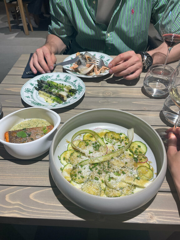 Дизайн помещения очень приятный. Пробовали тар-тар, порция большая, понравилось. Ещё очень пришлась по вкусу рыбка с разони и овощами.