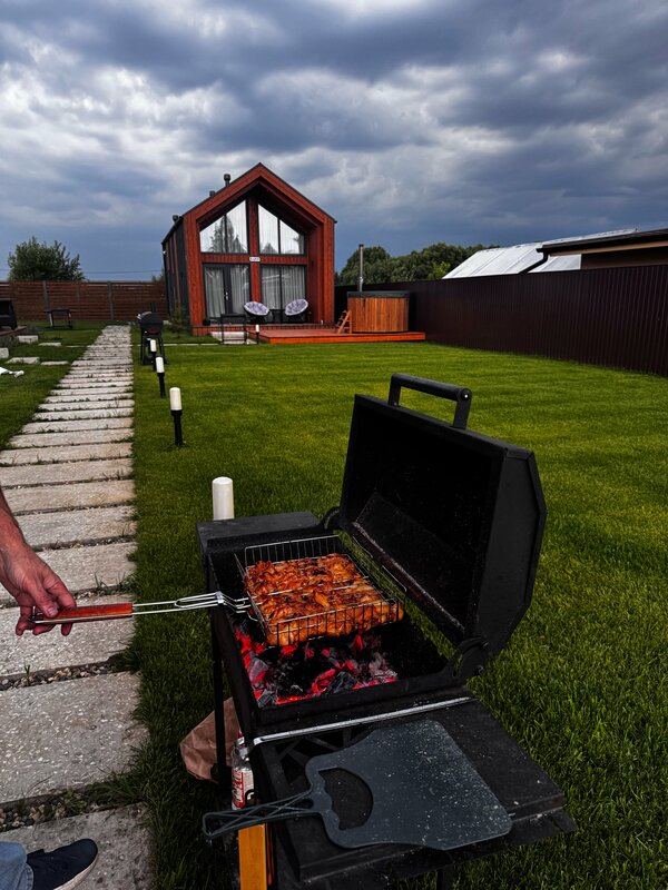 Домик действительно красивый, уютный, инстаграмненький)) Если бы это было бы мое первое путешествие в подобные Домики, то наверное я поставила бы 5, но так как есть с чем сравнить, то увы 4. Хозяева молодцы, стремятся к лучшему. Но есть еще много чего, что стоило бы доработать, на мой взгляд. Из плюсов: свежий воздух, вдали от цивилизации, красивый уютный домик, огоньки, виниловые пластинки, гамак на улице и в доме, все это прекрасно и общее впечатление об отдыхе хорошее. Но так же были минусы, с которыми не хотелось встретиться, но так случилось (повторюсь, на мой взгляд, это действительно мелочи, но когда мелочей не 1 пунктик, а больше, то целая картина, к сожалению портится) Шампунь во флаконе был пустой, вода в душевой уходила слишком медленно и обнаружив это в ночи, явно к нам бы не прибежали очищать, никакого так называемого ресепшена нет, по всем вопросам все через вотсап и решение проблемы не мгновенное. Бокал для вина один был треснут, сиденье унитаза болталось, вода жутко вонючая, но что ж поделать, такая местность, накипь в чайнике, ну слишком сильная (пакетик лимонной кислоты решает все и не так сложно), посуда была грязная.. Да, в условиях проживания написано "Мыть за собой и оставлять в чистоте" но не все гости, к сожалению, так делают, хотелось бы, чтобы перед заселением все-таки следили за такими вещами. Там где кострище и контейнер хозяев, ну выглядит это все как костерок у сарая. Да, рядом идет стройка и расширение, как я понимаю, комплекса, но все кажется недоработанным. И с сапами дойти до водоема через заросли, это тоже отдельное испытание. Если вдруг все-таки захотите ехать без машины, как решили мы (по описанию было так легко и просто), то подумайте 1000 раз. Яндекс такси туда невозможно вызвать, ожидание по 12-18 минут и все отказываются. Таксисты на станции, как только слышат куда ехать, так тоже отказываются и набивают цену, мол там такая дорога, себе дороже выйдет за 3 копейки ехать. Пешком от станции можно дойти за 30 минут, но дорога так себе, для прогулок сойдет, а с вещами, ну такое) В любом случае, мы благодарны, за предоставленные нам удобства. Спасибо! А подробный отзыв может что-то изменит и будет на благо новым гостям ваших милых домиков ✨