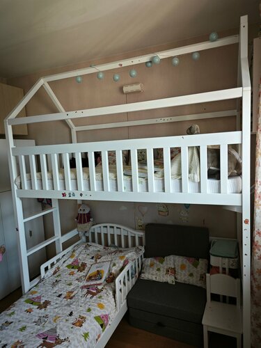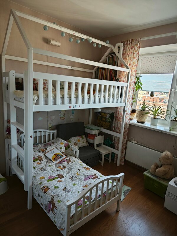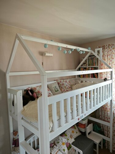 Искала кровать чердак для старшего ребенка, так как у нас уже есть кровать из бука, которую оставляем младшему. Задача была найти тоже буковую, и по стилю подходящую нашей 160х80 Фиореллино. Лазила по сайтам и наткнулась на лайвмастере на фирму Scandi, привлек дизайн и разнообразие моделей. Далее оставила на сайте заявку на кровать-чердак домик Нарвик, почти сразу перезвонил Артём, проконсультировал по размерам спального места. Оплата частями, изготовление 3 недели. Доставка в срок, деловыми линиями в МО вышло 3 тысячи. Муж собирал один, все понятно, удобно, но конечно не быстро, пришлось ему постараться. В итоге в комнате 9 кв наш чердак смотрится не громоздко. Дочь в восторге от домика. С удовольствием советую данного производителя и по качеству продукиа, и по отношению к клиенту! Scandi, спасибо за то, что на рынке есть такие производители качественной и безопасной для детей мебели из натурального дерева!