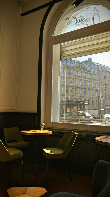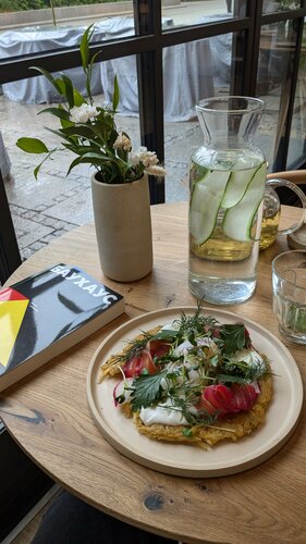 Уютное место, приятный интерьер🧡 Понравился большой выбор блюд и десертов. Пробовала очень вкусный чай Антистресс, подача в чайничке) и драник с семгой. Приятная деталь - перед едой принесли комплимент - графин с водой, огурцом и петрушкой, впервые пробую такое сочетание) Уютно провела время на Новой Голландии в дождь)