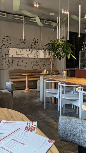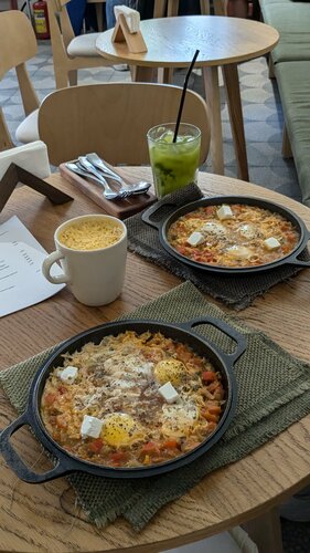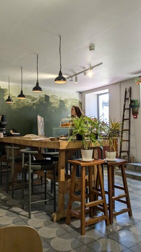 Милое место, понравился интерьер в успокаивающем оливковом цвете и наличие живописи) Хороший выбор блюд и авторских напитков. Пробовала шакшуку и облепиховый латте, все прекрасно 🧡