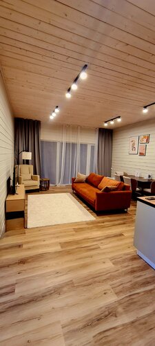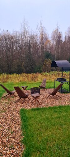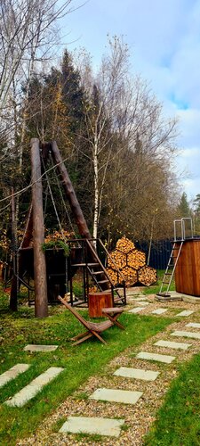Арендовали 22.10.25 домик"Лесной"#30.Рядом с каждым домом имеется парковка и мангальная зона - у нас был вид на лес Сам домик новый,с красивой мебелью и панорамными окнами.На кухне имеется вар.панель,микроволновка,кастрюли,тарелки,вилки,ножи,бокалы,чашки + кофе,чай,сахар,свежее постельное белье,мягкие полотенца,фен,тапки,зубные наборы,есть wifi Заселение электронное,очень удобно,уже не раз останавливаемся в отелях этой сети по дороге загружая паспорта всех гостей,в течении 20 мин присылают код На территории возможно арендовать большую/малую баню с горячим чаном и холодной купелью,позвонив либо договорившись на территории с отзывчивой девушкой Еленой В 5 минутах езды находится Сыроварня,в 10 мин заброшенный лагерь Сказка