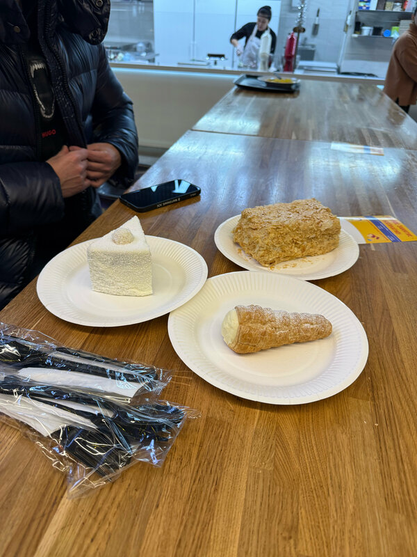 Десерты очень вкусные - рафаэло; трубочки; наполеон - крем вкусный / тесто свежее - готовят при Вас, можно взять с собой. В ассортименте торты и есть доставка.