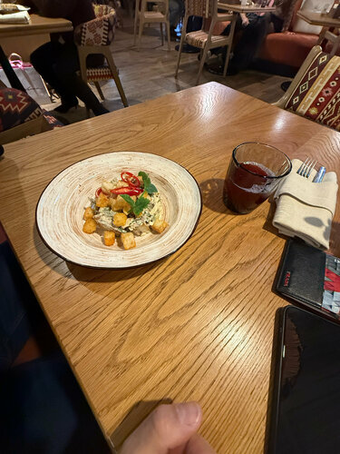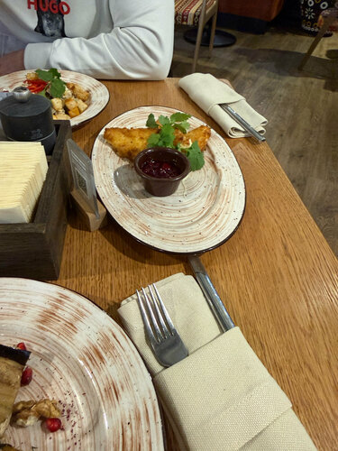 Кафе расположено на втором этаже в здание мойки. Очень приятные сотрудники- все вежливые и приятные. Еда вкусная - хачапури, баклажаны, салаты. Не понравился язык и рыбная нарезка из мороженой рыбы - не рекомендую. Так же в заведении очень холодно.