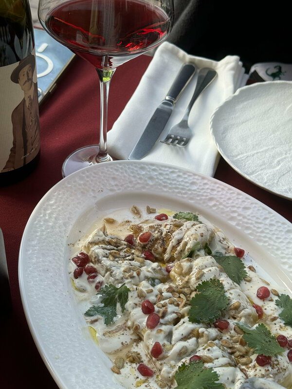 Отличное заведение! Замечательная кухня. Что брали? Толма по летнему (рататуй), голяшка ягненка, мутбал (очень вкусный), салат со свеклой и козьим сыром. Порции средние - чуть больше среднего. Выбор вин также порадовал - предложение на любой кошелек 🍇 Отдельно отмечу обслуживание, оно на высоте. Благодарю за очень вкусный и сытный обед)
