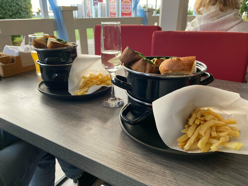 Отзыв о том, как можно обмануться вполне приличным рейтингом 4,6. Заказали шашлык из баранины, овощи на мангале (1 гриб, 1 помидор, 1 перец) и куриные крылышки шесть штук. Принесли все на одной небольшой тарелочке моментально, пока мы ходили мыть руки в здание санатория, на территории которого находится это заведение. Я ещё подумала, что волшебник мангальщик, шашлык за несколько минут зажарил. Мясо было абсолютно серого цвета и резиново-никакого вкуса. Пришли два кота, куриную кожу съели, куски баранины не стали даже пробовать. Серое мясо становится после варки. Счёт составил 4660 руб. за тарелочку и 2 бокала вина. В ресторане пятизвёздочного отеля, который расположен недалеко, с прекрасным вином и утиными ножками счет составил 3500. После “пиршества” руки предложили помыть в раковине с грязной посудой на барной стойке, туалета и раковины для мытья рук у них нет. Никогда! Не посещайте данное заведение! Просто треш!