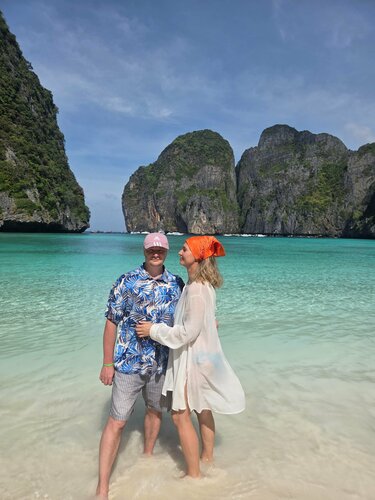 Ездили с "Золотым ключиком" на экскурсию 1 день на острова Пхи-Пхи. Туда входило посещение пляжа где снимался фильм "Пляж" с Ди Каприо, бухта обезьян, сноркинг в море, остров Бамбу, пещера викингов где разводят ласточек и добывают ласточкины гнезда и ещё какой-то остров название не запомнила. Места красивые, но туристов толпы, лодки швартуются одна за другой, купаются со всех лодок в одной небольшой лагуне, особо не поплаваешь. На пляже из фильма купаться запрещено, там заповедник и до сих пор восстанавливают экосистему после съемок. Песок на этом пляже необыкновенный, как пудра, очень нежный и море лазурное. Место очень красивое, но огромное количество туристов портит впечатление. Пляж с обезьянами смотрели с лодки, видно обезьян очень плохо, на мой взгляд локация бесполезная, можно смело пропускать. Зато на обратном пути в порт, прямо перед заходом есть много мелей где бегает большое количество обезьян, видимо охотятся на крабов. Вот там мы их и увидели, и поснимали) По организации экскурсии. Нашли её на Trip и через него же забронировали и оплатили. В принципе все было неплохо, кормили, поили, ходили на спитборде, быстро и мокро) Море очень волновалось, лодка подпрыгивала и путь получился дольше чем планировалось, но это стихия и от людей ничего не зависит. Команда была хорошая и очень старательная. В конце ещё на лодке команда нас угостила арбузом и ананасом. Из того что не понравилось: 1. заранее не сообщили что на локациях будут комары и надо взять репеленты, их можно купить при посадке, но ценник конский; 2. что нужны тапочки для коралов (в них можно ходить и по лодке, и по пляжу), а если будешь в своей другой обуви (сланцы, кроксы и пр) на лодке надо разуваться и ходить босиком, а перед тем как спуститься в море снова обуваться. В аквасоках действительно было бы удобней и их также можно купить перед посадкой на борт. 3. Что перед отправкой необходимо заполнить данные для страховки и нужны номера паспортов. Мы с собой их не брали и фото не делали. Хорошо, что был ваучер на проживание в электронном виде, списали оттуда. Как-то так, знакомство с островами прошло.