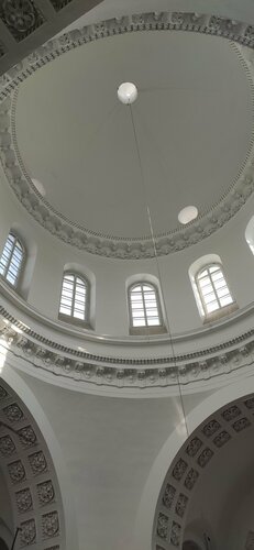 Очень красивая церковь, очень светлая. В ней дышится легко. Необычно, что сперва идёшь под колокольней и попадаешь в первый предел а потом можно пройти ещё в один под огромным куполом