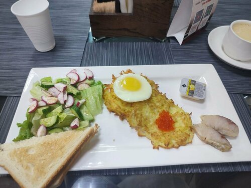 Неплохой отель в самом центре города с собственной парковкой, что немаловажно☝ Пешеходная Кировка, озеро рядом, есть где погулять. Не во всех номерах есть холодильник - это удивило, но на одну ночь не критично. Завтрак не богатый, но вполне сытный и вкусный.
