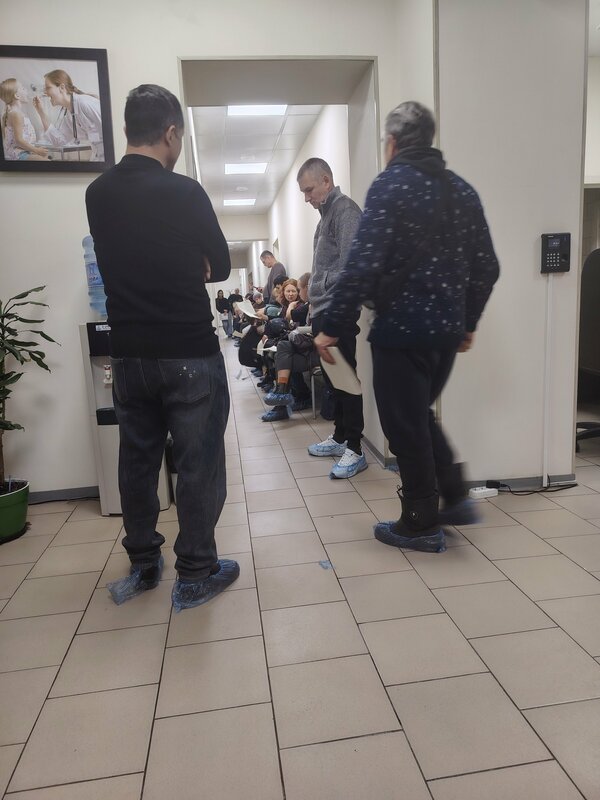 Нет слов, как оценить это заведение. Одна лаборант в первом кабинете, она же и ЭКГ, она же и флюоро графиня, ,она же и забор крови, она же и гинеколог. Это как вообще возможно?! Один человек принимает профосмотр, руководство данной компании может на работу взять дополнительно диагноста или людям нужно сидеть в таких очередях по 6 часов?! На фото не вся очередь в один кабинет, многие ушли, не стали ждать.