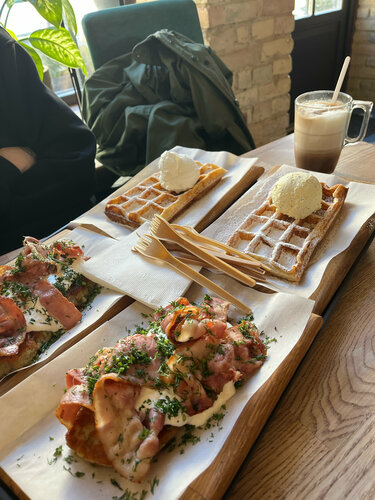 одно из самых любимых мест в Гродно. заходим сюда каждый раз, когда приезжаем в город. внутри очень атмосферный интерьер, снаружи есть пару столиков посидеть в теплое время года. приходили и утром и ближе к вечеру-люди есть всегда, ожидание может быть и 40 минут (об этом сразу предупреждают). очень вкусные и недорогие драники, которыми наедаешься так, что потом еще долго можно ходить по городу сытым. также пробовали вафли с мороженым, тоже очень понравилось. это место однозначно стоит посетить если вы приезжий!