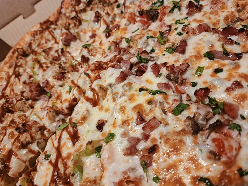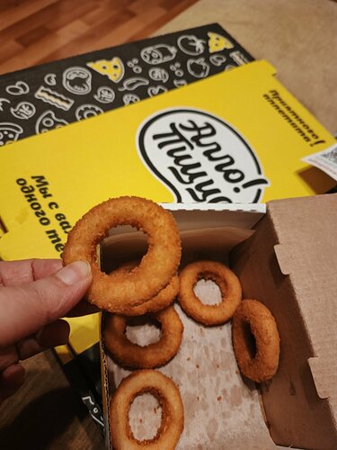 Заказывала доставку. Это фантастика, как можно за 25 минут приготовить и пиццу, и колечки из лука? И при этом - хорошо, и вкусно, и тесто дошло? Учитесь, конкуренты. Теперь предметно: + оператор при звонке говорит "Алло, пицца" - мне нравится, хороший ход, прикольно :) приятная девушка, вежливая, и ни капли раздражения, что заказ под закрытие + курьер оперативный, вежливый + еду доставили горячей + есть расчет через терминал + красивый дизайн упаковки, под луковые кольца отдельная коробочка + луковые кольца свежеприготовленные, явно следят за качеством и свежестью масла фритюра (нет посторонних запахов, прогорклости, и тд) приятная равномерная панировка, хрустяшие, аккуратные, одного размера; лук должного качества + пицца из половинок 36 см "Мясной пир/Цыпленок барбекю" на толстом тесте, размер соответствует заявленному, прорезана на порции оптимально, делится, но не разваливается, тесто пропеченое, пропитавшееся маслами сыров, что приятно, не супербулка, а оптимально по толщине к количеству начинки (еще интересно на тонком попробовать), начинки вдоволь, порезана аккуратно, распределена равномерно; сыра не пожалели, его вдоволь, и он тяяянется :) Барбекю соус всегда решающий по вкусу момент, приятно, что не залили, а сделали сеточку, поэтому есть оттенок вкуса, но он не перебивает все остальное + чесночный соус свежий, вкусный, не жирный и, что несомненно, приятно - идет бесплатно к луковым кольцам (несколько на выбор) - Есть одно но: соус не маркирован. + для новых заказчиков есть промокод на скидку + ценообразование: приемлемое, соответствует цене/качеству/сервису В общем я осталась более, чем довольна. Спасибо, большое!