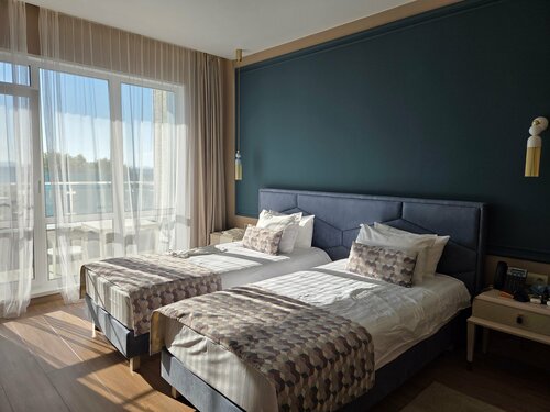 Прекрасный светлый интерьер Просторный номер Балкон За окном море🌊 В пешей доступности променад Очень приятное место для отдыха 🩵 Очень понравилось