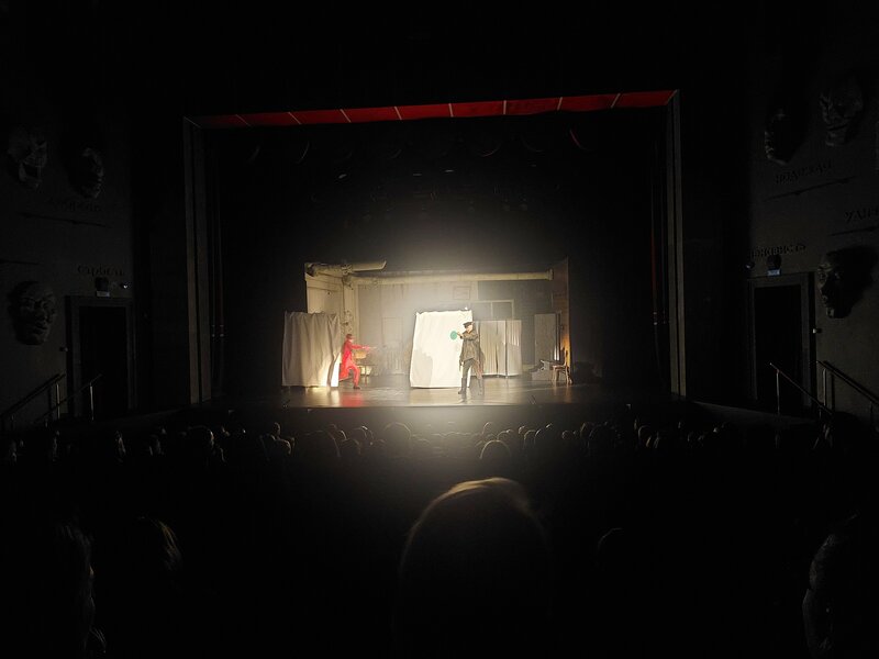 Интерьер театра сделан в современном стиле.Больно громко кричат, но когда во время спектакля "Ревизор",актер стал бегать по залу, я была просто в шоке,готова была встать и уйти.