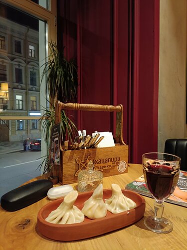 Самые лучшие хинкали в СПб, конечно не только они здесь вкусные, тут всё очень вкусное! Если тут побывал хоть один раз, то очень хочется вернуться снова и снова! Гостеприимство вежливых официантов очень располагает) сегодня очаровательная Геля 🌹
