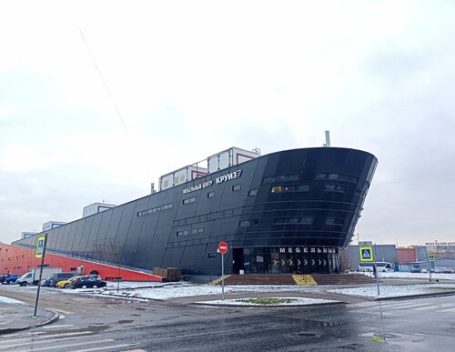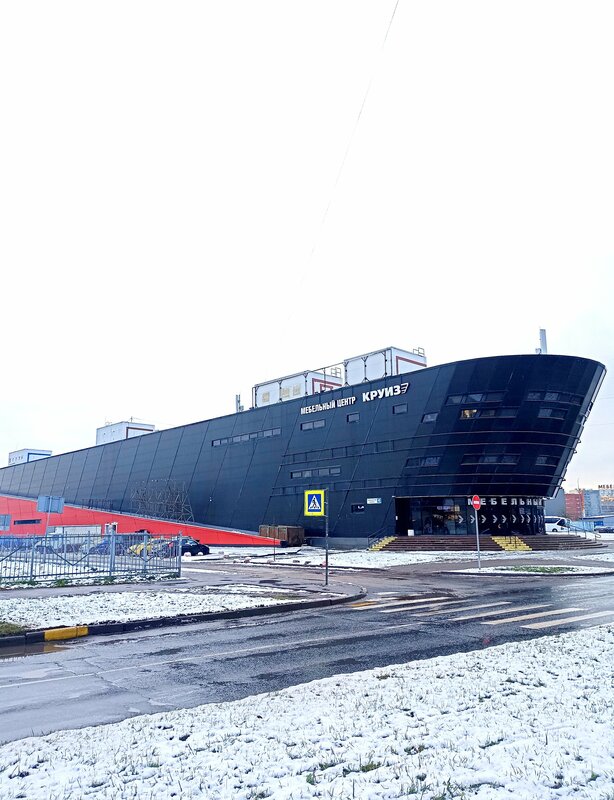 Как дочь моряка дальнего плавания, меня очень поразил этот мебельный центр, до глубины души. Когда вынырнув из-за очередного поворота я неожиданно увидела вдали танкер, то просто не поверила своим глазам и буквально потеряла дар речи - откуда в центре Приморского района Петербурга, вопреки логике и здравому смыслу, могло взяться судно нашего морского торгового флота? 😳 Вот это номер! Сказать, что я в восторге от увиденного и произведенного на меня эффекта - это не сказать ровным счётом ничего! Очень необычно, ярко и запоминающеся! Браво! 👏 Внутрь я не заходила, потому что торопилась дальше по своим делам, да и покупка мебели пока совсем не входит в мои планы, но снаружи - однозначно "пять баллов! Грандиозно и реалистично. Гениальная задумка!