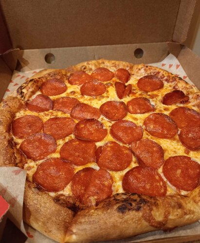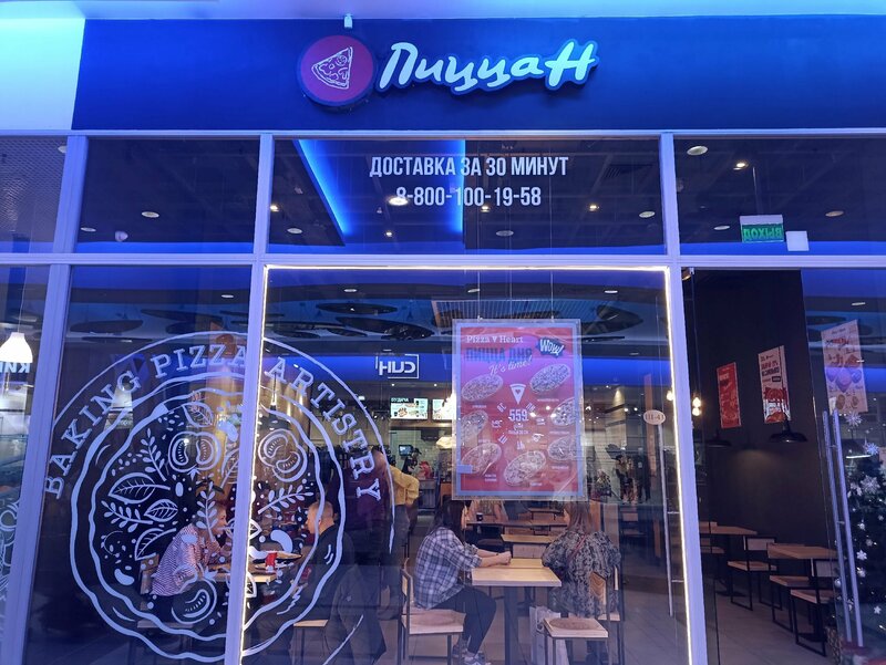 Именно в этом филиале была впервые. Свой заказ с самовывозом легко и просто оформила через приложение. Пицца была готова ровно к назначенному времени, прямо минута в минуту. Персонал вежливый, обслуживает быстро, поэтому очереди нет. В помещении чисто и уютно. Так как была здесь в воскресенье, то народа было много, как в самом ТК "Гранд Каньон", так и в пиццерии. Точка расположена в самом живописном месте ТК - "на берегу речки"))) Безумно вкусная и свежая пицца, вкусное, тонкое тесто и много начинки! 🍕 Мы остались очень довольны! Нет никаких претензий ни к обслуживанию, ни к качеству и свежести самой пиццы. Более того, хотя домой я принесла пиццу лишь через 30 минут, мы даже греть еë не стали: она и так была чудо как хороша! 😋