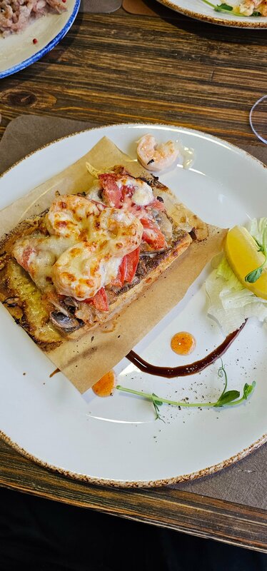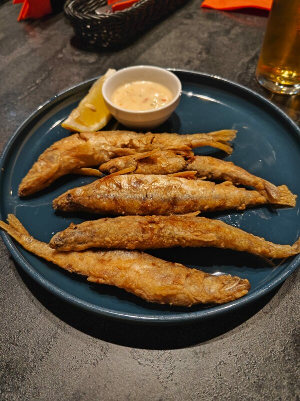 Уютно, в зале удобные диваны, терасса в тихом месте, пледы. Быстрая подача блюд. Заказывали корюшку, салат из печени трески с виноградом и пасту. Все вкусно, но корюшка просто восторг! Хорошее разливное пиво.