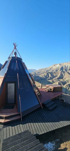Отдыхали 13.02 - 15.02, добирались на такси из Махачкалы, обратно также. Заселились в Нео типи Luxe. Место очень красивое! Вид и правда завораживает! Из плюсов: - в домике тепло, теплый пол, настраиваемая подсветка внутри - может быть как ночник, так и очень мощный свет. В целом уютно и удобно, много розеток - у нас был просто потрясный джакузи, доступный 24\7 и подогреваемый до 40 градусов. За это время успели полежать раза 4, ощущение невероятное, если еще и с вином, да на рассвете\закате). Обычно в аналогичных глемпингах такие джакузи\купели докупаются отдельно и на время (например, на 3ч). Тут же доступно всё время! Однозначно огромный плюс. - В наши даты почти никого не было, но даже при заселении домики достаточно удалены друг от друга, чтобы не мешать уединению - В 15 минутах пешком есть подземный Салтинский водопад, можно прогуляться и посмотреть, очень красиво - Администратор часто на связи, еще в ночь перед выездом мы, к сожалению, отравились и тут отдельное человеческое спасибо девушке администратору за полисорб, который она любезно дала из запасов, просто спасла наш путь домой :) Из минусов: - В самом нео типи погреть еду негде, нет ни микроволновки, ни плитки, только мангал на улице, но угли и розжиг надо тогда вести с собой. Либо идти минут 3-5 до общей зоны, где есть микроволновка, а потом с теплой едой обратно, либо кушать там (все это я узнал заранее до поездки, администрация информацию не скрывает). - Сам нео типи позиционируется как видовой, но окна немного грязные, в целом не критично. - Вода в трубах в зимнее время ночью может замерзать и часов до 12 дня у вас ее просто не будет, на этот случай администрация предоставляет 5л бутыль воды. Еще у нас не до конца закрывалась дверца душа. - автомобильная дорога к самим домикам сильно ухабистая, на машине с низкой посадкой надо ехать с очень большой осторожностью. - вай-фай глемпинга в нео типи не ловит, сказали еще пока не упели дотянуть туда (нео типи самые новые и удаленные домики). Поэтому только свой мобильный инет. Нам повезло, что хорошо ловил свой Мегафон Есть доставки из трёх ресторанов, по факту в наше время работал только Адат. (Лагуна был закрыт до конца выходных, а Сали открывается с апреля). У Адата доставка 1000р независимо от суммы заказа, привозят в пределах получаса, в целом все горячее. Возможна оплата безналом (перевод). Прошу обратить внимание, что это не минусы конкретно глемпинга, описываю в целом проведенное время. В целом, при учете всех выясненных ньюансов, успели заранее подготовиться в моментах, которые нам были важны и время получилось провести отлично! Еще раз спасибо девушке администратору за помощь (а еще у них на территории есть милейший черный пёс).