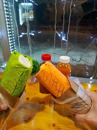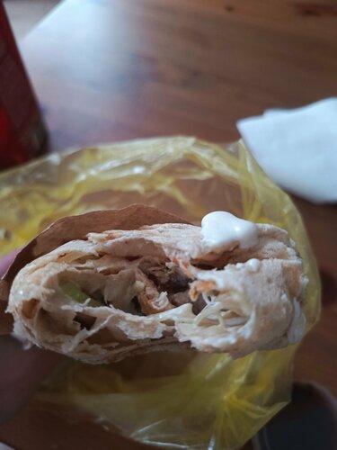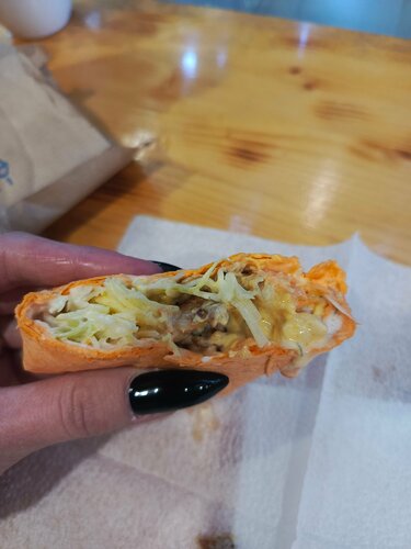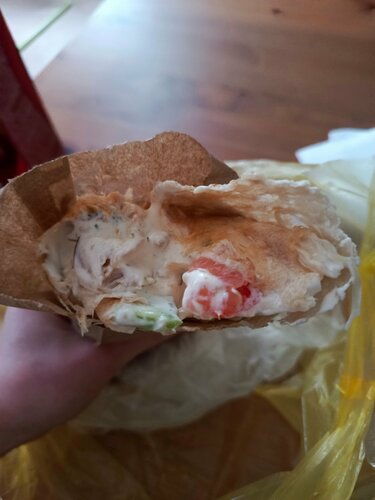 Брала выпечку самсу, курник, хачапури, вкусно. Но тут дошли у меня руки до шаурмы и тут то настигло полное разочарование. Пока до начинки дойдешь уже лавашом наешься, когда дойдешь до начинки испытаешь не самые приятные эмоции. Куски крупно нарезанного мяса, к тому же не прожаренного. Подумала ну ладно 1, откушу еще и нет он там был не один... В общем пишу и прям 🤢 хочется.