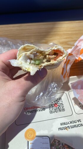 2 звезды за оформление кибитки, и относительно быструю отдачу. Шаверма пепперони не вкусная к сожалению, ингредиентов крайне мало, взвешивают все на весах, но при этом перебор белого соуса и барбекю. По вкусу будто еш лаваш с кетчунезом. Пепперони немного чувствуется, курица - нет. В общем еда крайне посредственная, не стоит тех денег сколько запрашивают.