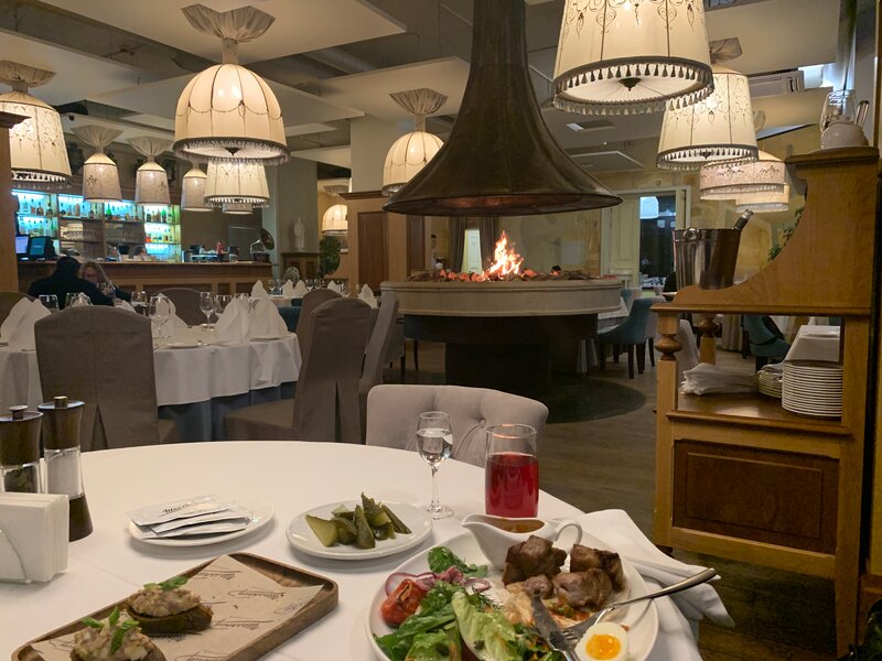 Ну это отдельный космос! Потрясающее место. Сначала об атмосфере: все оформлено в стиле дачи советской эпохи, деревянные панели, картины. Отдельное внимание камину, запах горящего дерева, добавляет уюта всему месту. Еда это искусство, очень вкусно. Когда мы посещали это место был фестиваль пельменей, в общем пельмени с креветкой и красной икрой, оставили настолько восторженные отклики, что сложно описать, и нужно пробовать. Классические блюда также на высоте. Персонал и обслуживание хорошее. Место заслуживает своего внимания. Посещая его, вы точно останетесь под впечатлением. Что отметить из минусов, если это так можно сказать, место явно из дорогих. Но в данном случае, я считаю это обоснованным. К посещению обязательно!
