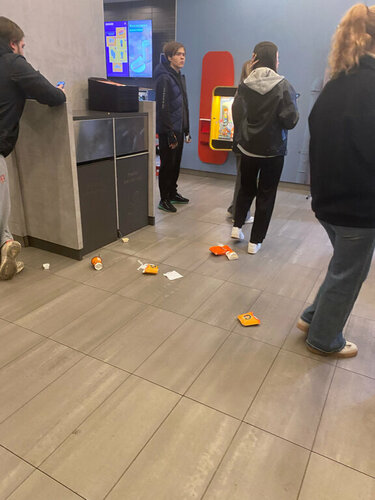 Часто здесь бывает грязно, но то что я увидел сегодня, не встречал еще ни в одном маке! Просто помойка. Практически все столы в заведении завалены мусором, а тот мусор что не уместился на столах, валялся на полу. Заказ ждал 30 минут и за это время никто так и не убрался, не смотря на замечания.