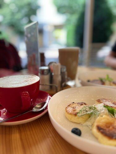 Много раз наш завтрак проходил в этом заведении. Цены ниже средних, при этом качество на очень хорошем уровне. Брали шакшуку, сырники со смородиной, торты, все очень вкусно. Отдельно хочется отметить кофе, большие чашки и он действительно вкусный. Формат кафе предполагает оплату в начале, что нам тоже понравилось, поскольку не нужно ждать официантов для расчета. В качестве минусов можно отметить только слабый Wi-Fi, но для многих возможно это не самое важное.