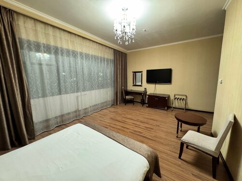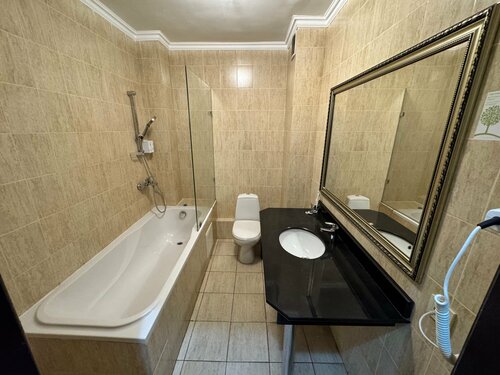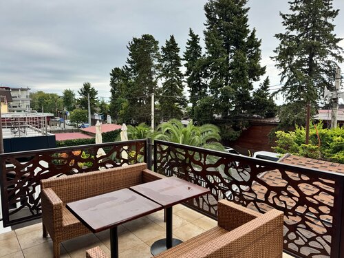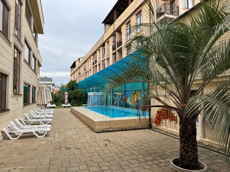 Прекрасный отель с подогреваемым бассейном и лучшим рестораном на побережье. Номера уютные, но не тесные, матрасы средней жесткости - очень комфортные, не продавленные, подушки небольшие очень комфортные. В номере сейф, чайник с чаем, тв плазма. Магнитный ключ в номере. Завтраки изумительные и очень сытные, все приготовлено с душой, кофе прекрасный. Если проживать с обедами, то они тоже очень вкусные и сытные. Ресторан при отеле очень порадовал - все качественно приготовлено со вкусом, поварам и официантам большое спасибо. Бассейн подогреваемый достаточно большой. Есть еще второй бассейн с прохладной водой. Полотенца хорошие выдают всем желающим искупаться в бассейне или море. Халаты в номере, тапочки. Расположение отеля очень удобное - есть пятерочка, много кафе, набережная в шаговой доступности.