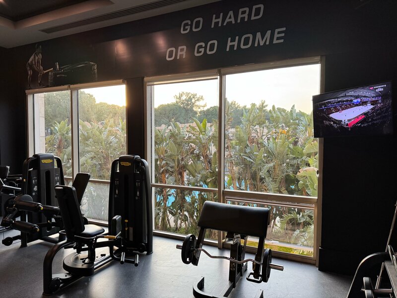 Хороший небольшой тренажерный зал. По площади метров 80, есть зона для разминки, там же большая боксерская груша. Тренажеры с хорошей эргономикой на все группы мышц, весов достаточно. Беговая дорожка всего одна. Раздевалка небольшая, есть душевые - все чисто и комфортно. Чтобы зайти в зал по разовому тарифу, нужно на охране у входа на территорию отеля дождаться сотрудницы зала, минут 5 ожидания.