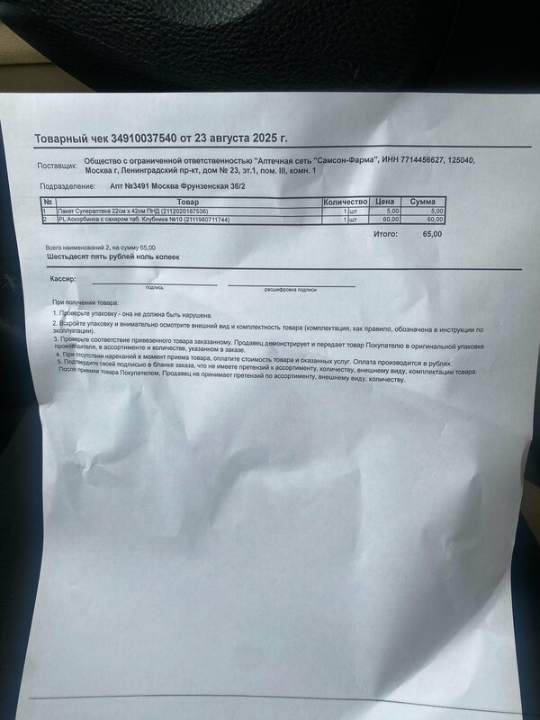 Ужасная аптека , нужно просить чек всегда , в чеке дополнительно указывают пакет, который я не просила , но при этом его не дают. Только после обнаружения его в чеке объясняют ,что у них так работает система и пакет считается автоматически.