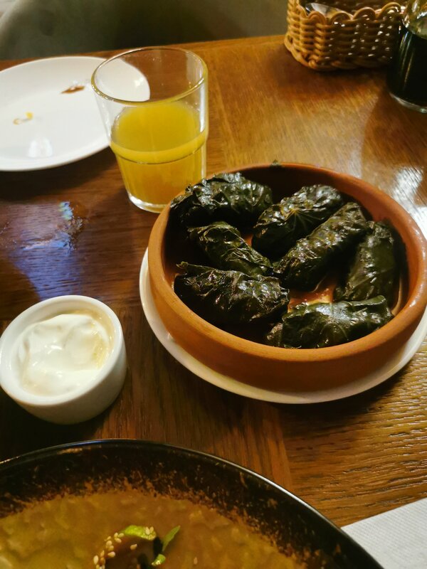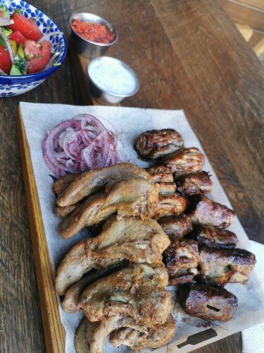 Вчера с мужем были первый раз по совету друзей. Было ОЧЕНЬ вкусно! Салаты с индейкой и языком, долма , канапе из креветок (равного я не ела никогда!!!), рулетки из баклажан, шашлык-всё понравилось! Но домашнее гранатовое вино это просто чудо!!! Пъешь вкуснейший гранатовый сок!! Лёгкое и безумно вкусное! Даже домой взяли, не удержались)) Теперь у нас есть новое любимое место! Спасибо огромное официантам-все подсказали, рассказали и посоветовали.
