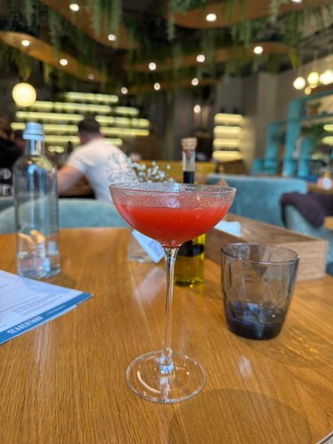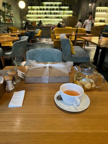 Очень нравится это место, часто здесь бываем по многим причинам: 1. Здесь прекрасное обслуживание, очень дружелюбные и приятные сотрудники, что создаёт особенную комфортную атмосферу; 2. Вкусная еда. Пицца — одна из лучших в городе; еще классные бифштекс и салат с кальмаром; 3. Очень приятная музыка, обожаю! 4. Панорамные окна и столики у них — вид на Комендантский проспект; 5. Есть пледы, подставки под сумки; 6. Вкусное мороженое — есть даже карамельное; 7. Отдельная коктейльная карта с интересными названиями и разнообразными составами. С радостью приходим сюда и пообедать и поужинать. Можно заказывать и блюда на вынос.