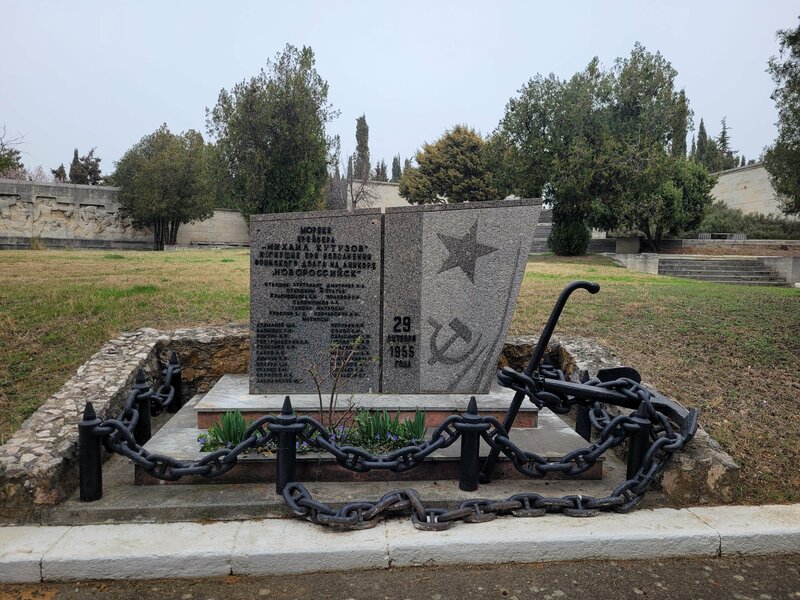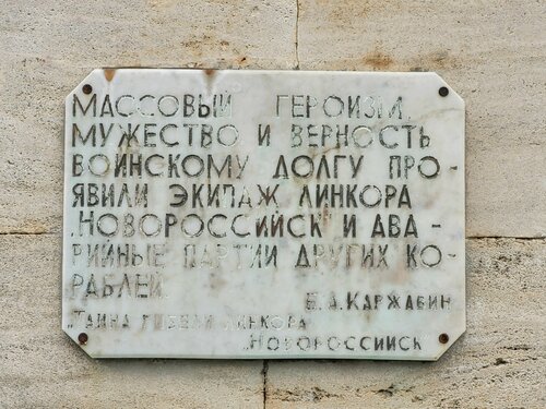 На территории Никольского храма находится данный мемориал морякам с Новороссийска. Скрыт от глаз густой растительностью. На въезде на площадь у храма, налево вдоль забора. Также можно увидеть на территории могилы других погибших моряков с разных кораблей и подлодок.