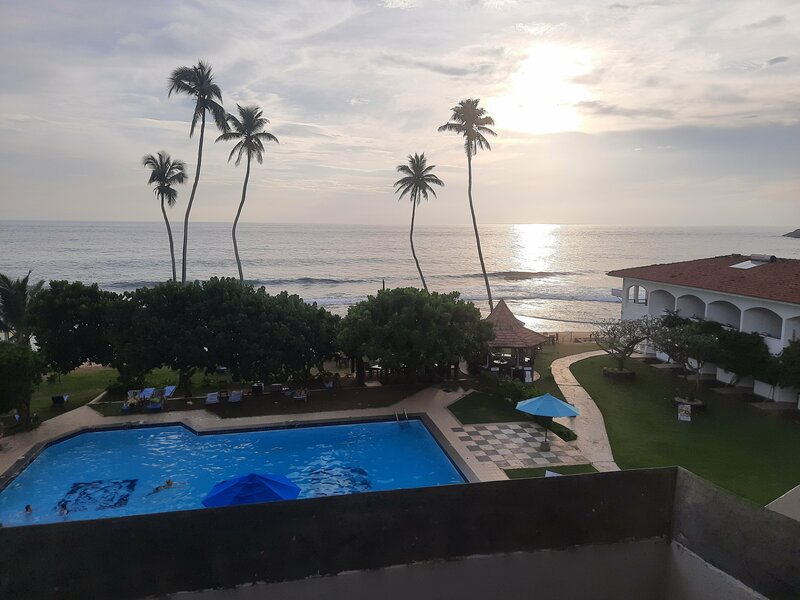 Для Шри-Ланки это очень неплохой вариант! Пусть вся мебель и техника старенькая и пошарпанная, но было чисто, для нас это важнее. Уборку делали каждый день, бельë и полотенца тоже периодически меняли. Территория красивая и ухоженная, бассейн чистили регулярно, народу в нëм купалось мало, в основном все валялись на лежаках, которых на всех не хватало. Но зато можно было поплавать спокойно. Рядом с отелем пляж плохой, не для купания, поэтому ходили вправо, плавали на мелком рифе с черепахами, рыбками и даже иногда маленькими акулами. А влево, на пляж с большими волнами, ходили смотреть закат. Завтраки в отеле средненькие. Выбор вроде есть, но много острых блюд, будьте аккуратнее. Единственный минус - на столиках у бассейна с видом на океан нельзя сидеть со своей едой и напитками. Даже если ты у них заказал покушать - напитки всë равно не разрешают свои принести. Постоянно из-за этого возникали конфликты с официантами, вроде ты постоялец отеля, а пользоваться территорией не можешь. Тем более, большинство времени эти столики просто пустовали. Но не смотря на это, отель понравился, рекомендуем)