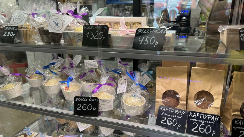 Тульский пряник, белевскую пастилу, коломенский зефир и даже смокву смоленскую я уже пробовала. А вот Зарайскую коврижку попробовать, даже будучи на ее родине, не доводилось. Поэтому, замечательно, что в Москве, неподалеку от метро Бауманская, открылась первая Коврижечная. Это уютное кафе с достаточно широким выбором коврижек. Милые продавщицы подробно расскажут об ассортименте и составе коврижки, обязательно помогут с выбором. Здесь есть и маленькие коврижки за 180р и такие же, но большие. Также можно собрать подарочный набор из 4 или 6 коврижек. Мне по вкусу пришлась коврижка "Сила Монтесумы". Помимо этого лакомства, в ассортименте представлены пирожные картошка, сделанные по особому рецепту, оладьи с разной начинкой и многие другое. А еще есть сбитень и напитки с его добавлением. Очень понравился холодный кофе по-русски.