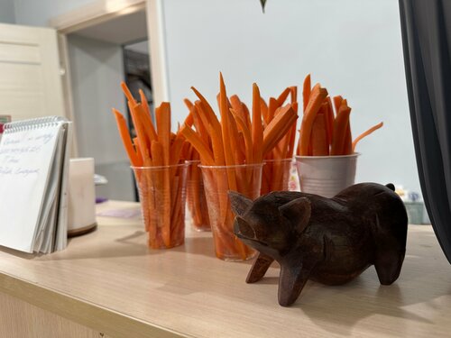 Не все свиньи живут на ферме. В Московском зоокафе MINIPIG можно увидеть очаровательных свинок! Мини-пиги, также известные как микросвиньи или чайные свиньи (поскольку в младенчестве они могут поместиться даже в чайной чашке), могут достигать от 20 до 60 см в холке и весить от 22 до 90 килограммов. По сути, мини-пиги появились в Великобритании и стали набирать популярность по всему миру. Помимо того, что они миниатюрные, они ещё и умные, чистоплотные, дружелюбные и реже вызывают аллергию. При входе нам пришлось продезинфицировать руки, снять обувь и надеть предоставленные бахилы. В кафе несколько помещений: в одном проводятся мастер-классы, во втором расположился ресепшн и зона отдыха, а в третьем вольеры с животными. В зоокафе можно поиграть с малышами и взрослыми свинками, которые бродят по полу и общаются с гостями. Маленьких свинок на руки брать не разрешают, так как они начинают нервничать. Помимо того, что это весёлое место для игр, кафе Mipig также служит площадкой для дрессировки, где микросвиньи учатся взаимодействовать с другими животными. В зоокафе помимо мини-пигов обитают кролики, белки дегу и шиншиллы. Например, Феня (самый большой свин) понимает команду «Сидеть» и выполняет ее, чтобы получить заветную морковку от посетителей. Свиньи на удивление тихие, хотя иногда и фыркают. Они не любят оставаться в одиночестве, что делает их отличными компаньонами. Каждая свинья уникальна. У каждой свой характер. Вопреки стереотипам, в кафе безупречно чисто и нет никаких запахов. Вы увидите дружелюбных микросвиней, свободно гуляющих по кафе и готовых к общению. Это невероятно общительные и умные животные. Не удивляйтесь, если некоторые из них решат, что ваши колени — идеальное место для уютного сна! Есть предварительная запись на посещение. Также несколько вариантов тарифов. Вы можете выбрать наиболее удобны для вас. Нам лично хватило часа для того чтобы расслабиться и пообщаться с животными. Стоимость часового тарифа 1100р. В этот тариф входит часовое посещение кафе, общение с животными, перекус, настольные игры. Корм для животных (стакан морковки) стоит 100 р.