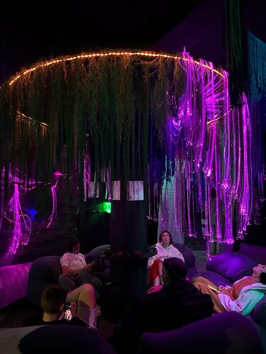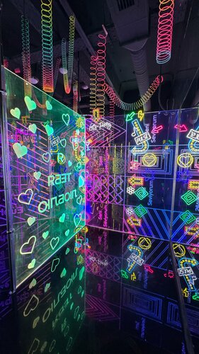 В Москве всю большую популярность набирают иммерсивные мультимедийные арт-пространства, сочетающие искусство, технологии и интерактивность. Одно из таких мы посетили на днях. «Эйфория» открылась на Новом Арбате в апреле 2025 года. Это уникальное пространство, созданное с помощью искусственного интеллекта, состоит из пяти тематических комнат, расположенных на двух этажах. На каждом этаже встречает вежливый персонал, который в вкратце рассказывает о каждом зале. На минус первом этаже расположились залы «Притяжение» и «Пульс», а на втором – «Инфинити», «Сад Грез» и «Галактика». Эти комнаты создают разные цифровые и визуальные впечатления. В залах «Инфинити» и «Сад грез» мы провели больше всего времени. Они нам больше всего понравились и запомнились. Если оставите отзыв, как говорится, не отходя от кассы, то в подарок дают брелок на выбор. Мелочь, а приятно. Еще тут продают оригинал того самого Лабубу, но цены кусачие. Мама уже неделю под впечатлением от этого места, так что я думаю мы скоро туда вернемся, чтобы в очередной раз потеряться в атмосфере звука, света и современных технологий. Отдохнуть от городской суеты и ловить те самые «Вау!», которые хочется запомнить.