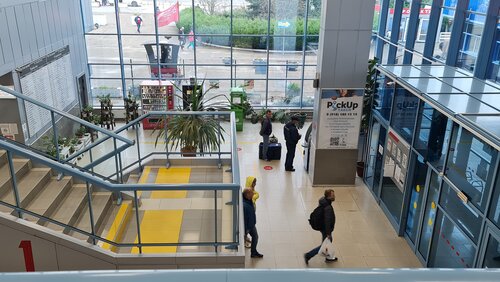 Вокзал очень компактный.Оборудован для людей с ограниченными возможностями пандусами и подъемниками,персонал очень шустрый все организовано.На территории и в самом здании есть магазинчики,а так же детская комната для детей,но в пандемию к сожалению не работает.