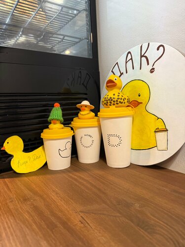 Совсем небольшое кафе в утином стиле. Забавно. Хорошее кофе.
