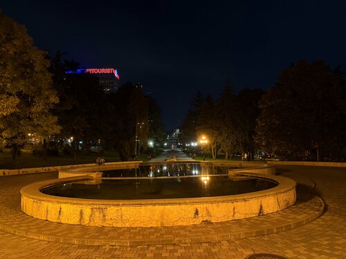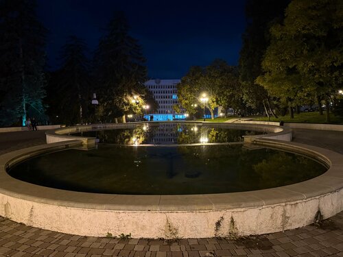 Фонтан без чаши, в котором струи вырываются непосредственно из мостовой. К сожалению, в действии не видели. Находится фонтан у входа в городскую библиотеку. Построена она была в 1977 -1982 годы.